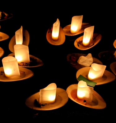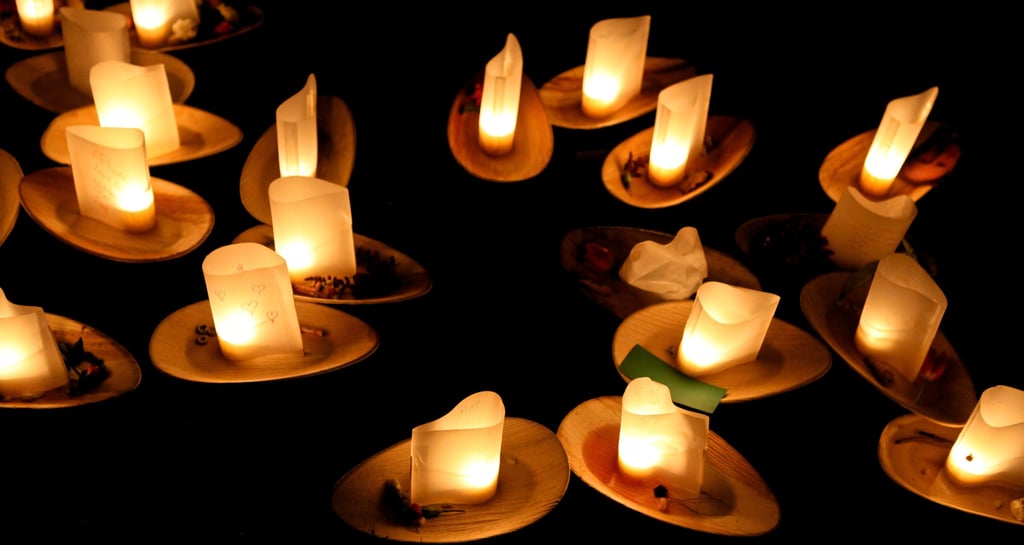 Honderden lichtjes op de grote vijver die laten zien dat iemand missen ons allemaal raakt, Op 2 november tussen 18:30 en 20:30.