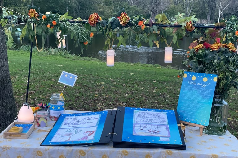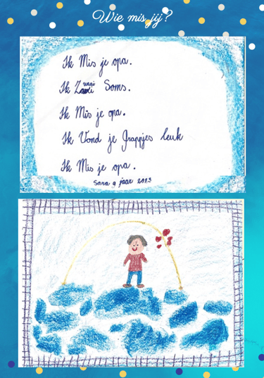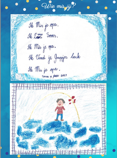 Op 2 november in de middag staan er tekeningen en gedichten van kinderen rondom de vijver. Ze laten zien wat iemand missen voor hen betekent. Alle kinderen en jongeren kunnen iets insturen.